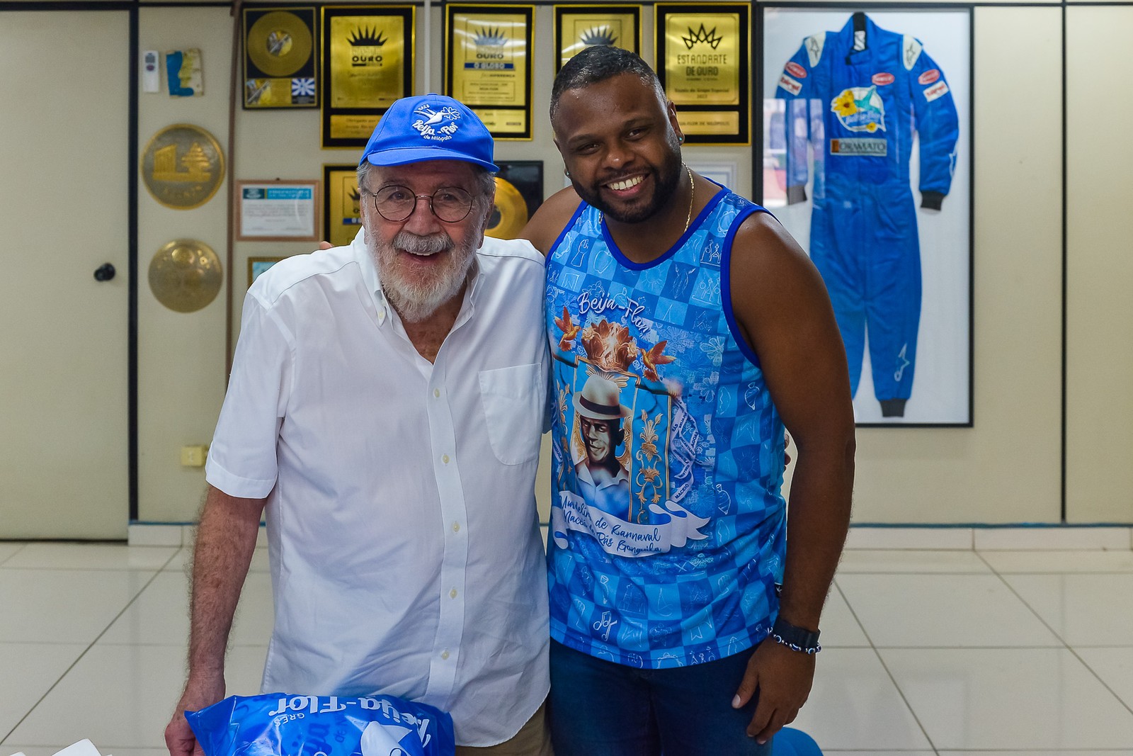 O cineasta Cacá Diegues e o carnavalesco João Vitor Araújo — Foto: Eduardo Hollanda