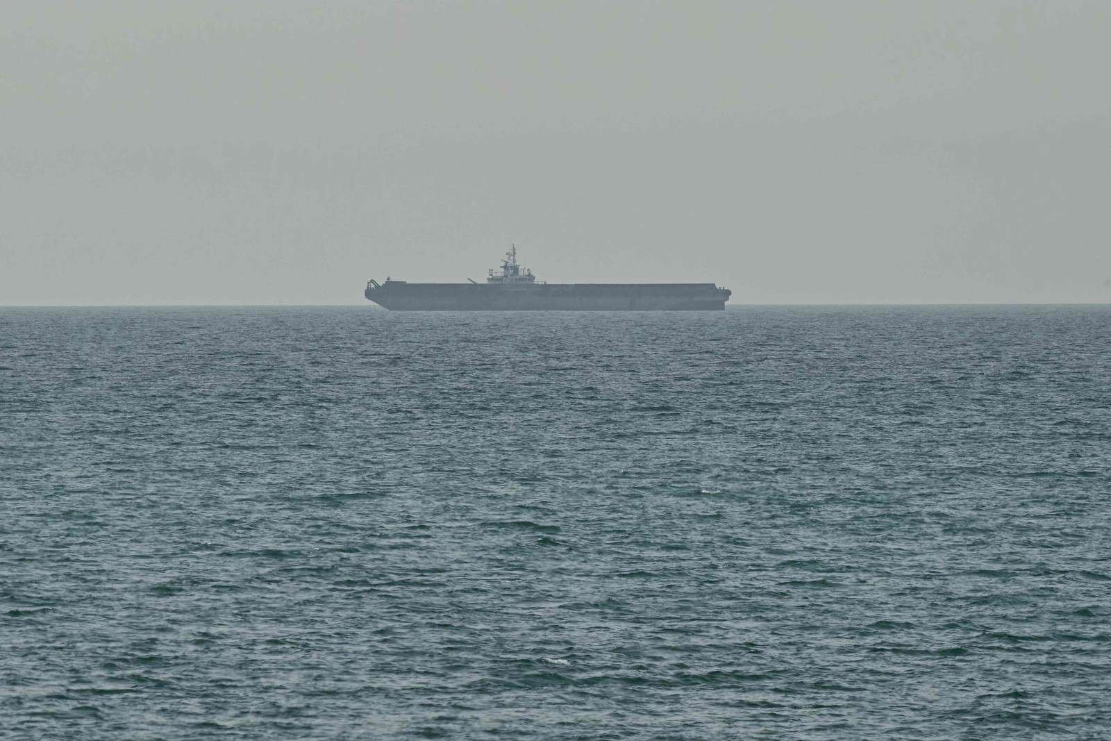 Navio é visto perto da costa de Ras al-Khaimah,nos Emirados Árabes Unidos,a caminho do Estreito de Ormuz — Foto: AFP