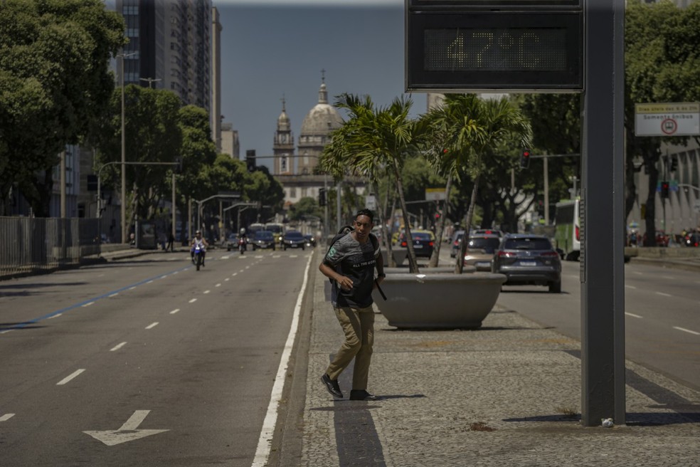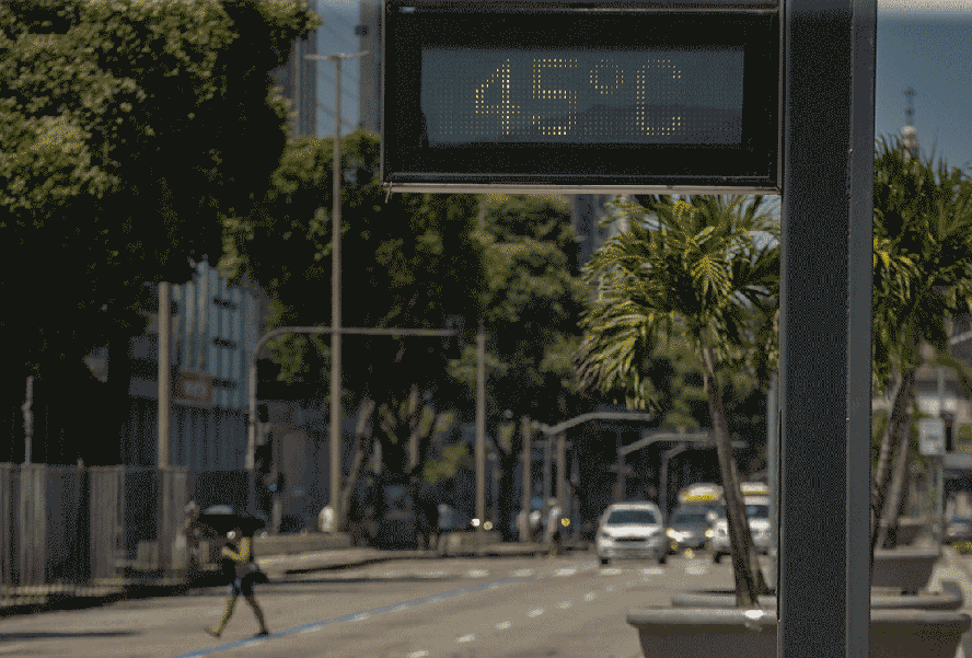 Na Avenida Presidente Vargas,principal via do Centro do Rio,em meio ao intenso fluxo de carros e ônibus,um relógio de rua — depois de informar a data e a hora — marcava 45 graus no início da tarde desta segunda-feira. Em poucos minutos,essa temperatura chegou aos 46,e,sem seguida,a chocantes 47 graus.
