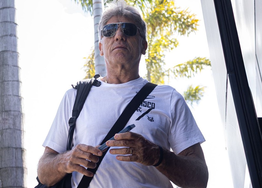 Renato Gaúcho no desembarque do Vasco em Belém — Foto: Matheus Lima/Vasco RESUMOSem tempo? Ferramenta de IA resume para você