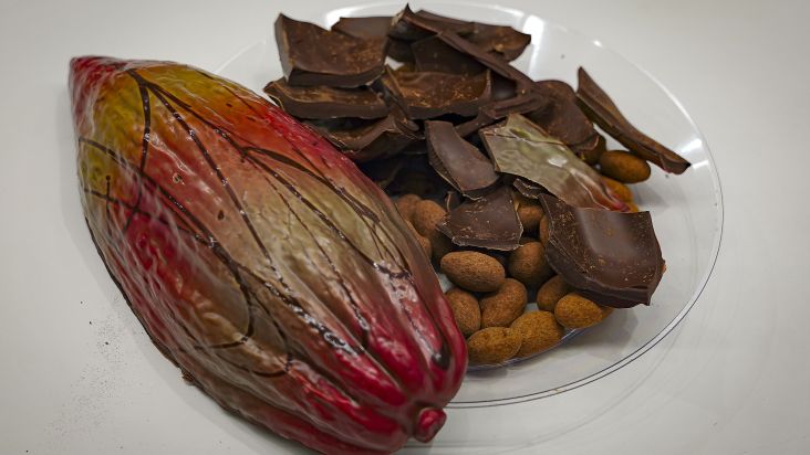Ovo crocante de chocolate intenso com amêndoas e laranja |